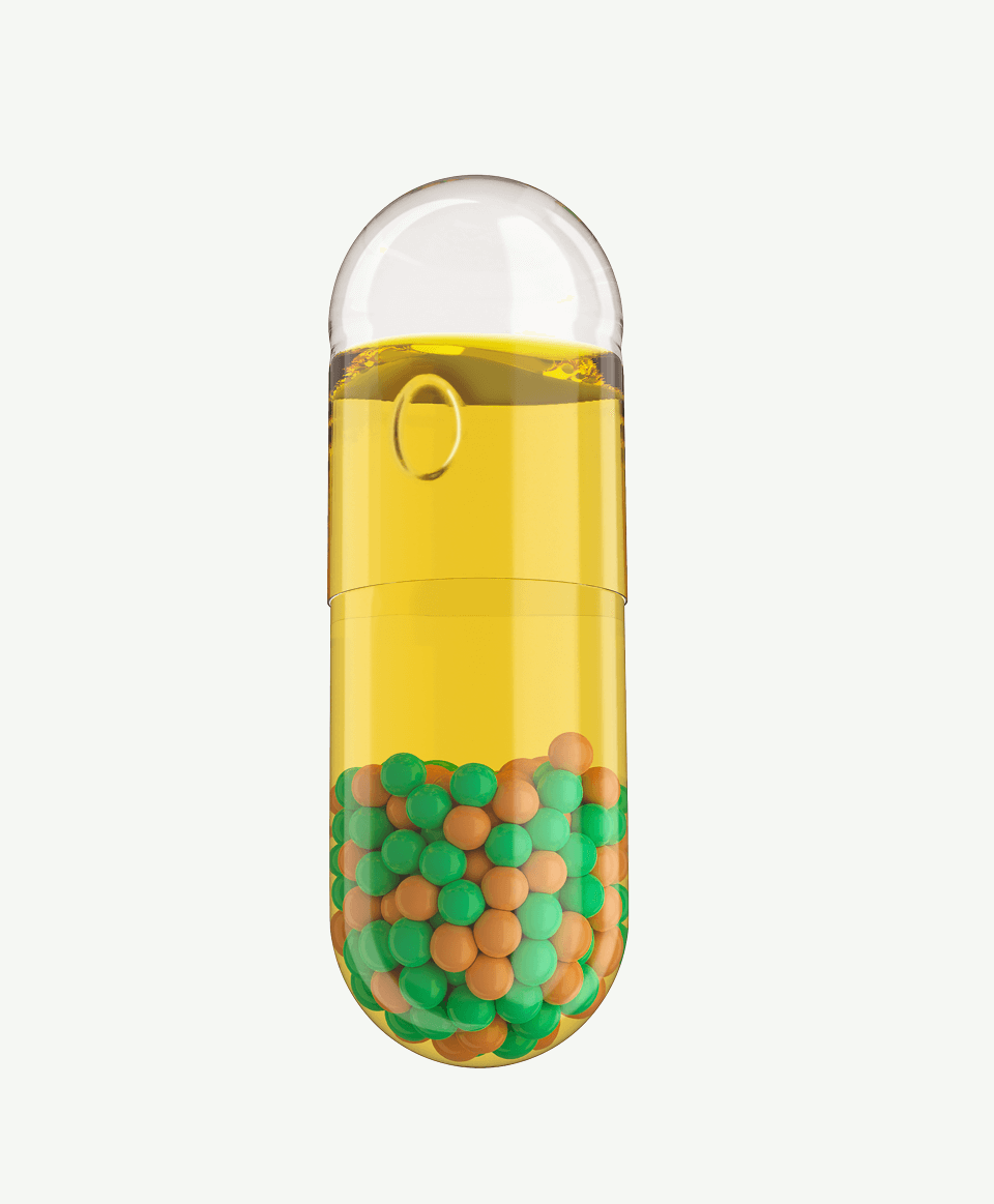 We can create a variety of liquid-filled hard capsules with different fill combinations. Your unique fill combination can impart a distinct and attractive visual identity to your product.